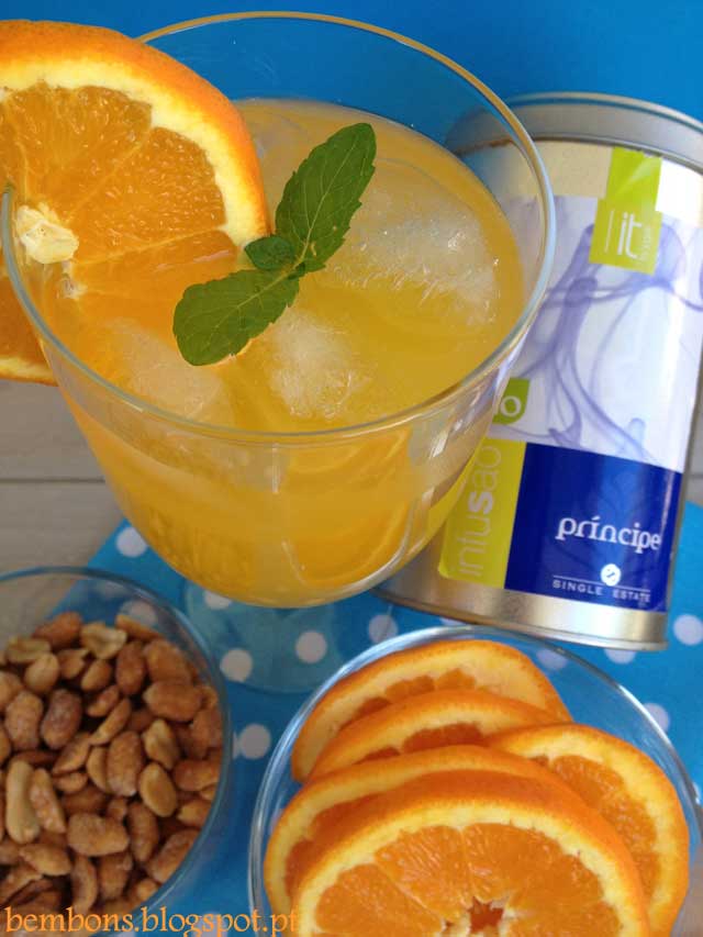 - Mexer e servir com folhas de hortelã e rodelas de laranja.
